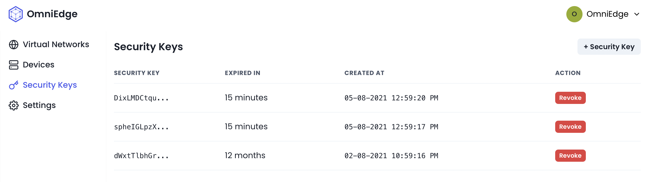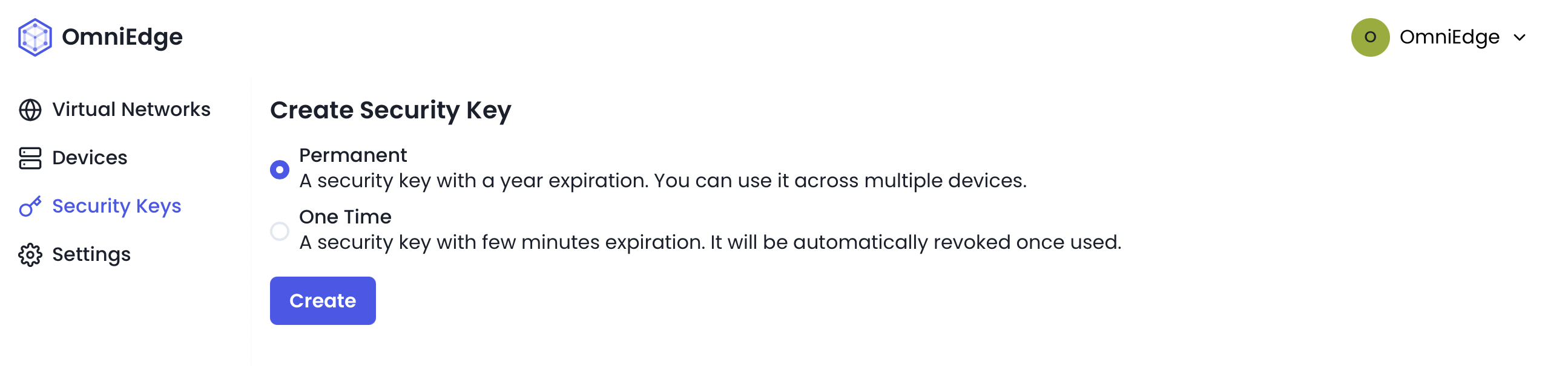 Security Key is used to register devices, there are two kinds of Security OmniEdge offers: